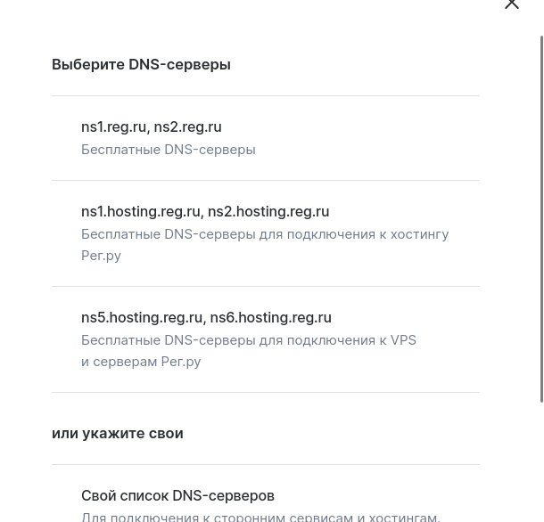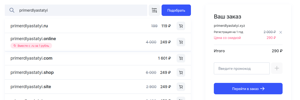 Для начала необходимо просмотреть доступные доменные имена на сайте reg.ru.