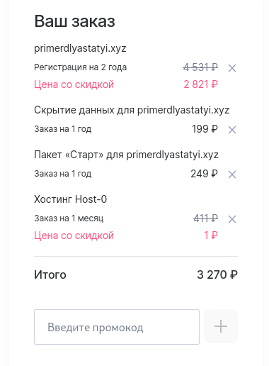 Например купим домен .xyz. Регру - контора … и пытается навязать кучу хлама с доменом. Удаляйте это всё нафиг и продожайте.
