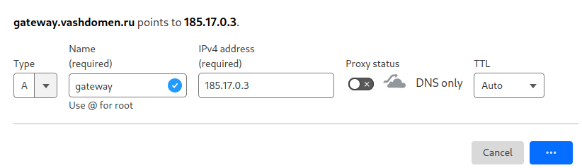 Теперь, когда мы узнали IP адрес - надо создать вспомогательную запись