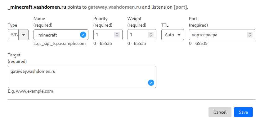 Теперь на ваш сервер можно будет зайти по адресу ваш.домен без всяких :порт.