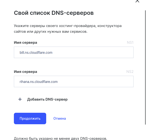 После установки новых nameservers нужно будет немного подождать (до 24 часов), пока регистратор домена не применит необходимые изменения.