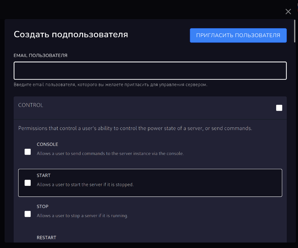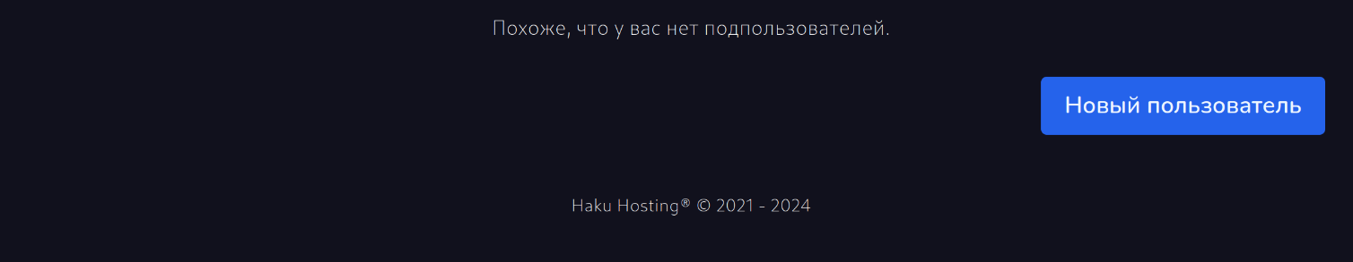 Вы можете добавить пользователя с дополнительным доступом к вашему серверу. Нажмите “Добавить пользователя” для перехода в меню добавления пользователя.