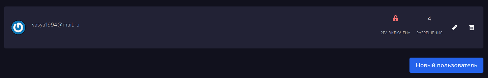 После добавления вы можете изменить разрешения пользователю или удалить его.