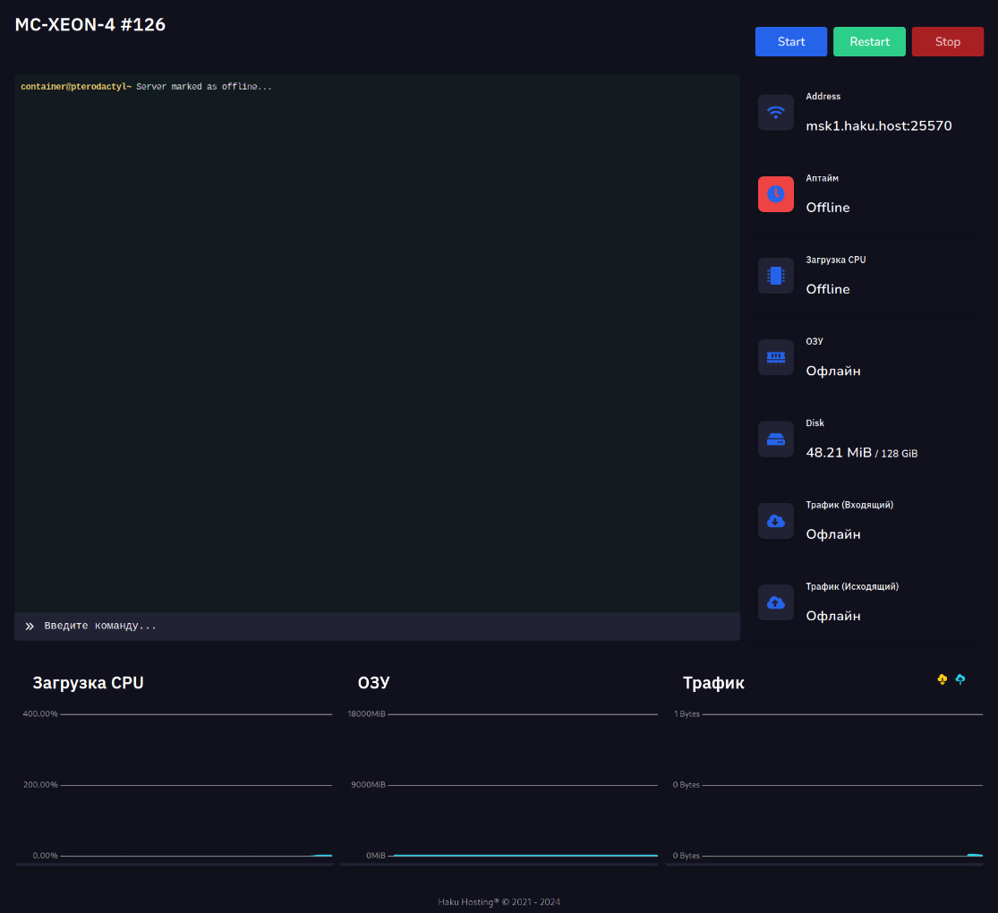 Pterodactyl - это панель управления, которая используется у нас во всех тарифах, кроме хостинга веб сайтов (не сервисов).