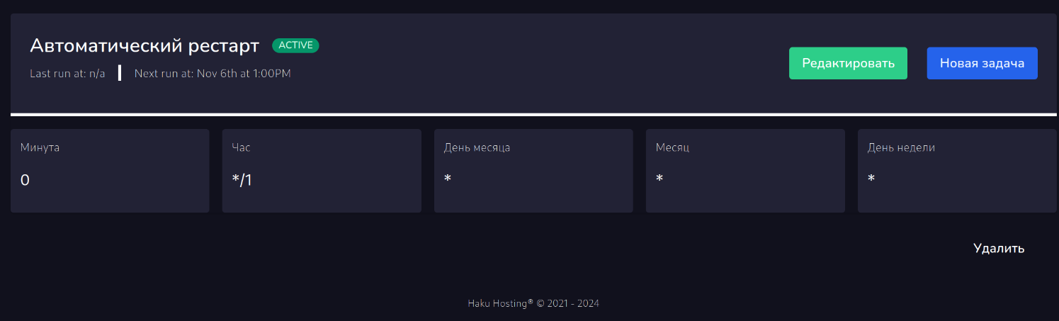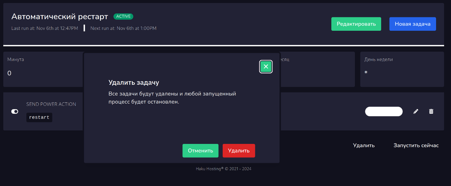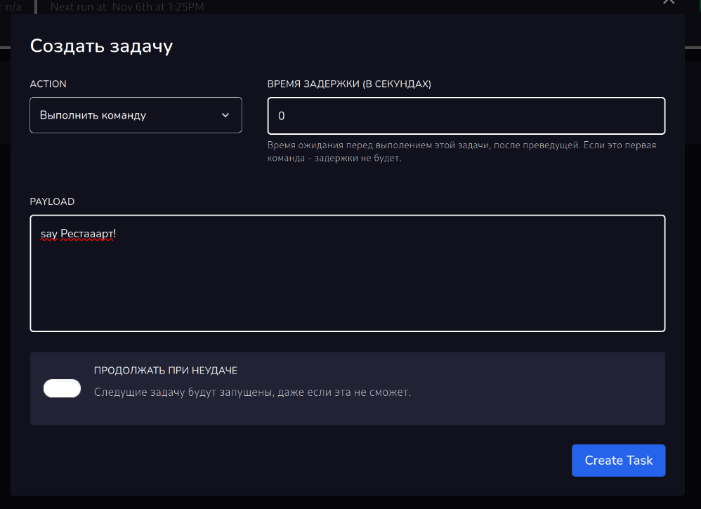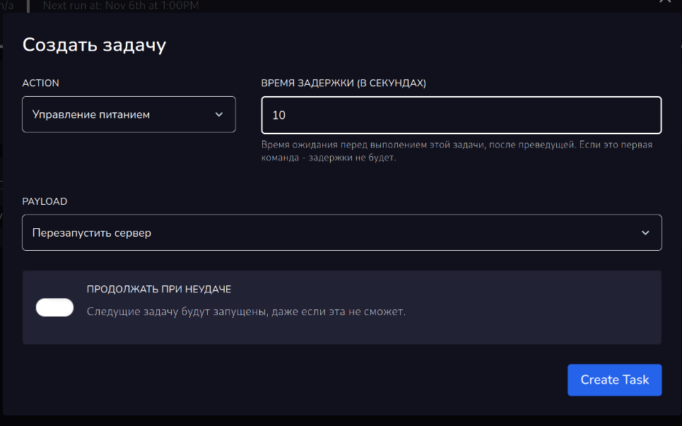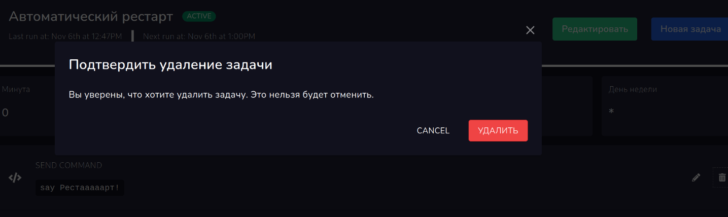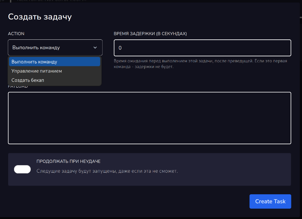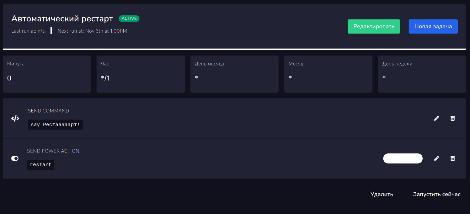 На фотоснимках вы можете наблюдать кривой перевод, который был исправлен или будет исправлен в ближайшее время. В задаче есть ЗАДАЧИ. Задачи в задачах это отдельные действия: перезагрузить сервер, включить, выключить, выполнить команду, создать бекап.