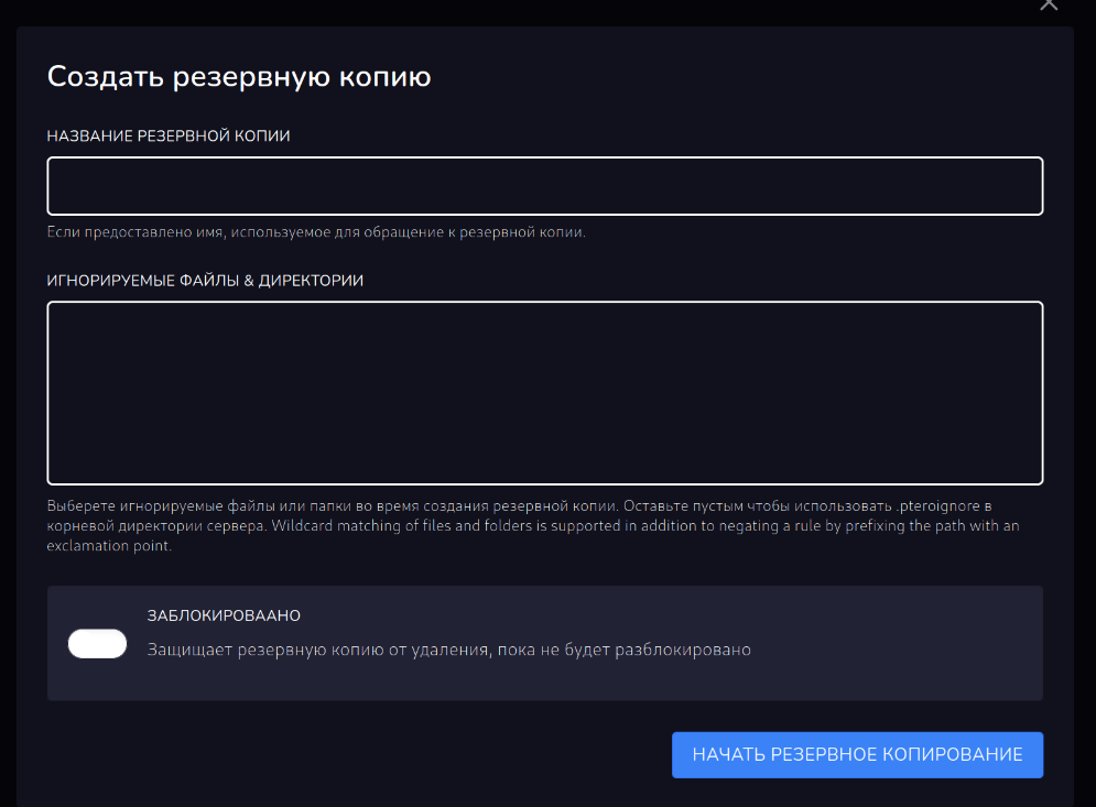 Здесь можно указать название, файлы и папки, которые не включать в резервную копию.