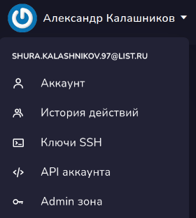 В этом разделе будут описаны функции аккаунта