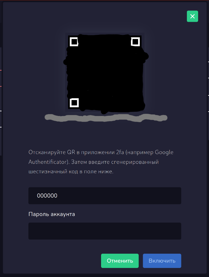 Чтобы настроить 2fa - проследуйте инструкциям на экране.